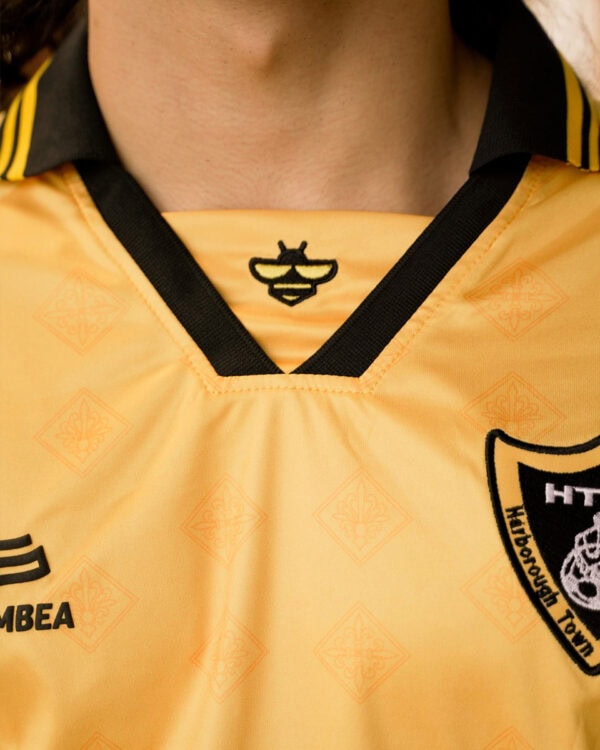 El diseño de la camiseta ha buscado reforzar la identidad visual del club alrededor de la abeja, mientras incorpora pequeños detalles inspirados en la ciudad de Market Harborough. Como el estampado de la fachada del Old Grammar School o la etiqueta basada en el reloj solar de la iglesia de St. Dionysius.