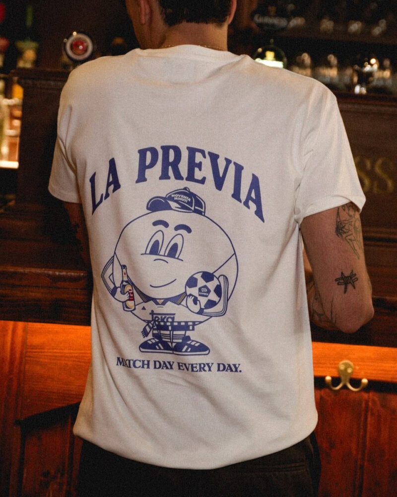 Maglietta ‘La Previa Chamartín’ per tifosi che si godono il pre-partita nei bar e nelle strade intorno allo stadio.