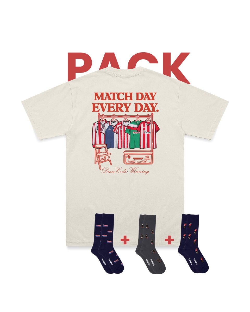 Escoge tu camiseta del equipo asóciala con nuestra exclusiva tirada de calcetines, y hazte con el pack para tomar algo con tus amigos y lucir verdadero amor por el fútbol.