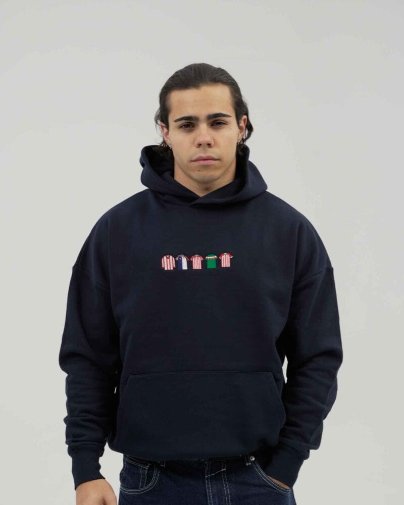 Tenemos la sudadera perfecta para ti. Si eres un verdadero fan, sabrás a qué año pertenece cada detalle bordado.