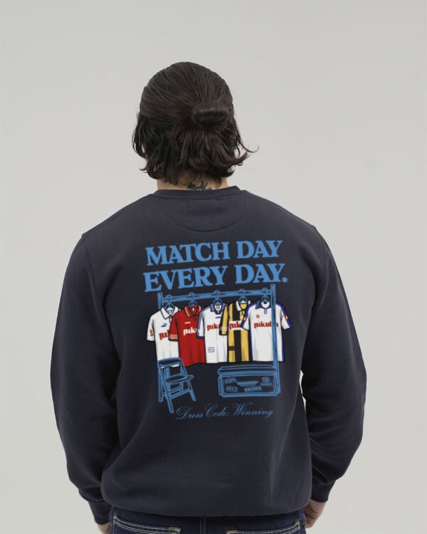 Sudadera sin capucha de color azul navy con 5 camisetas míticas del club de los blanquillos. Toda una insignia para los seguidores del equipo.