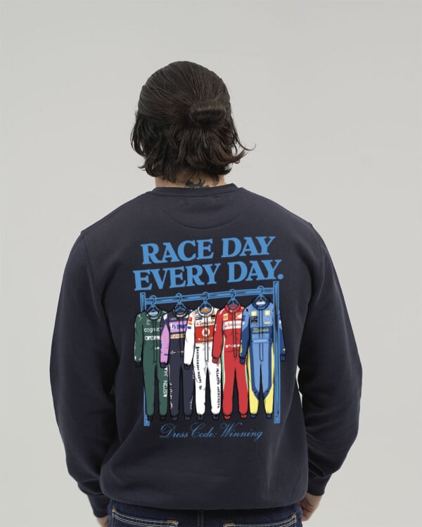 Sudadera sin capucha de color azul navy con 5 monos del piloto más top del motor. Toda una insignia para los seguidores del nano. ¿Llegará la 33?